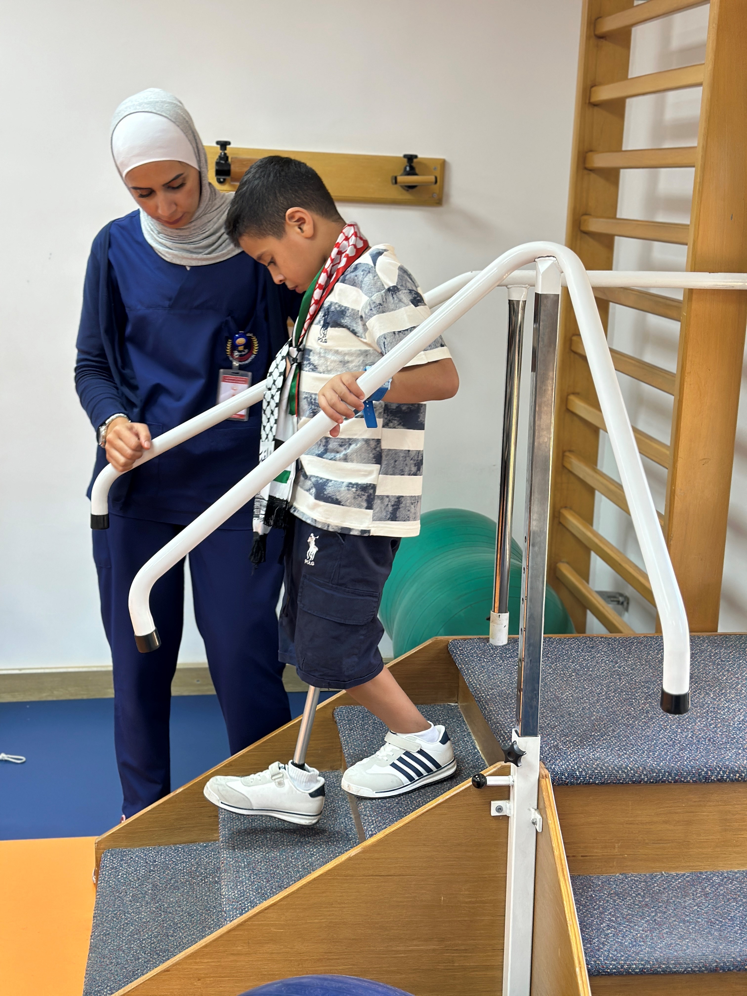 Alongside seven other children from Gaza who are already receiving treatment from MaFaZ in Jordan, eight-year-old Mohammad also took this path. He lost more than just his siblings in the war. When he tried to help the injured after a bomb attack at a water distribution point, he was hit by another rocket. Due to the severe injury to his right leg, it had to be amputated immediately in Gaza.